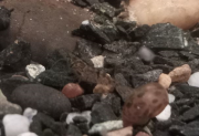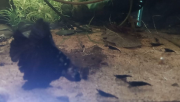 Du coup je disais mimétisme avec le poisson, plutôt qu'avec leur environnement. Avant elles étaient sur basalte noir, et elles étaient gris clair ou rousses...  Deux d'entre elles avant leur changement de bac :