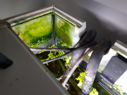 Alors autre part on me dit que c'est surement des cyano en fin de vie qui luttent pour survivre (ce qui correspondrait pas mal avec mon problème initial finalement). On me conseille du coup d'augmenter un peu l'ajout de CO2, d'ajouter du fer, et de faire de gros changements d'eau sur 4 semaines comme j'expliquais plus haut. Je sais que francis opte plutôt pour faire un blackout radical mais ça me fait peur pour les plantes et surtout pendant un certain temps je n'ai plus aucun regard sur ce qu'il se passe.
