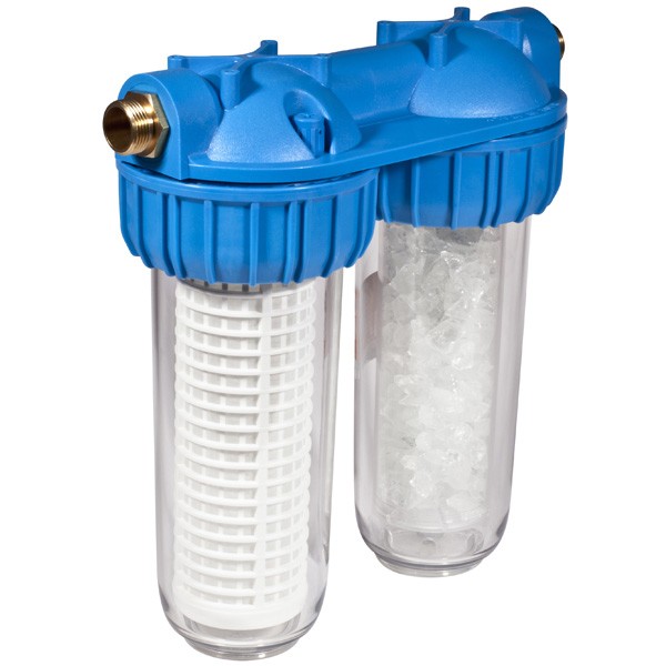 Pour ne pas l'imposer à mes co-locataires, j'ai installé une station de filtrage faite avec ce style de filtre à cartouche  J'ai en cascade une cartouche grosse impureté, une impureté fine et deux charbon actif. Elle passe ensuite en dérivation dans un osmoseur ( rendement réel de 1:1,2 ) Aquamedic Platinium pour permettre un mix d'eau osmosée avec de l'eau non osmosée mais filtrée J'obtiens ainsi une eau de qualité contrôlée, adaptée aux colocataires que je souhaite conserver.