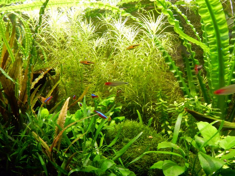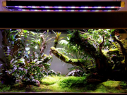 deux exemples de rendu Alpha-leds (qui ne sont pas de mes bacs ) :  6/ pour terminer un petit mot de l'épuration de l'eau utilisée. Habitant en ville, l'eau de pluie me semble trop polluée pour être utilisable sans risque. La qualité de l'eau de ville à Tournai étant jugée juste « acceptable » par mon fournisseur, je ne voulais pas prendre de risque avec une eau dont la composition pouvait varier dans d'énormes proportions. Le fournisseur reconnaît par exemple que ses analyses durant les 12 derniers mois ont montrés les variations suivantes : dureté de 29,4 à 46,9 ° fr, des nitrates de 3,4 à 24 ( limite admissible officielle de 50mg/l, dont aucun soucis !?) par exemple, mon GH mesuré hier à la sortie du robinet est de 31. Et non, il n'y a pas d'erreur de manip car j'ai recommencé 3 fois l'analyse. Et dire que l'on est sensé boire cette eau.