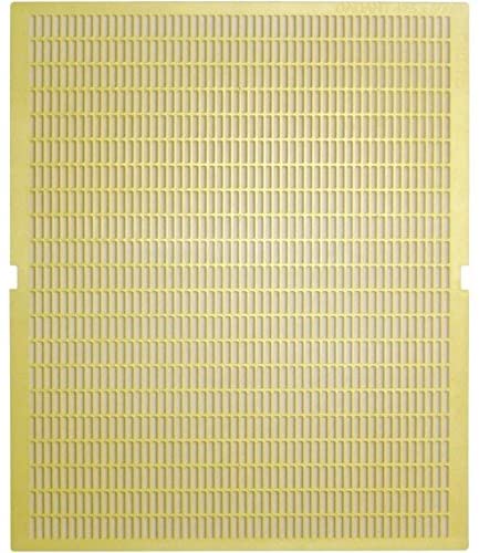Pour la grille, j'ai cherché un modèle inox, mais n'ai rien trouvé d'acceptable. J'ai finalement déniché des grilles à reine Nicot Langstroth utilisée dans les ruches. Elles sont en plastique semi-rigide alimentaire, de dimensions de 425mm sur 500mm.  on les trouve à partir de 1,85€ sur le net. il existe aussi un autre modèle avec des ouvertures plus petites appelé « Grille à propolis » en PVC dur.