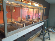je n'attends pas vraiment de soucis vu la solide armature métallique et l'épaisseur des verres....au vraiment pire, une petite fuite quelque part qu'il sera aisé de corriger. ou alors, c'est que j'ai vraiment tout faux  mon stress est plutôt pour l'introduction de la face avant à l'intérieur de l'armature. j'espère que les tolérances dimensionnelles choisies se révèleront adéquates. Heureusement que la manipulation sera réalisé par des hommes du métier.