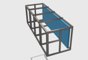 Une double glissière plastique sera collée sur le cadre en verre ( représenté en jaune sur le schéma) pour permettre de les enlever facilement pour nettoyage. Double car cela permet de placer une grille propre avant de retirer celle à nettoyer. J'utilise un « Profilé glissière JéWé PVC (supérieur) blanc 4,2 cm) ». c'est un rail plastique utilisé pour une (légère) porte coulissante.  restera à trouver une solution élégante pour rigidifier ce rail dans sa partie haute.