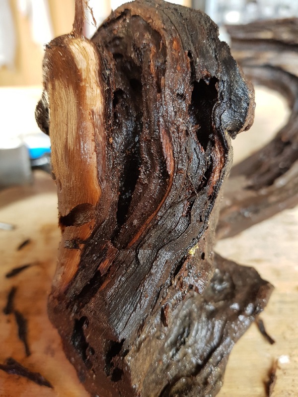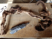 Etant donné que j'avais fixé Fissidens fontanus tout l'après-midi avec un tout petit point de colle dans toutes les anfractuosités des souches, je suis face à un problème pour retravailler les vignes, c'est ce qu'on appelle être dans une impasse. Je vais devoir condamner les mousses, elles mourront pendant que je travaille à nouveau sur les souches de vignes. Heureusement, j'avais plusieurs petits pots et j'en ai encore.