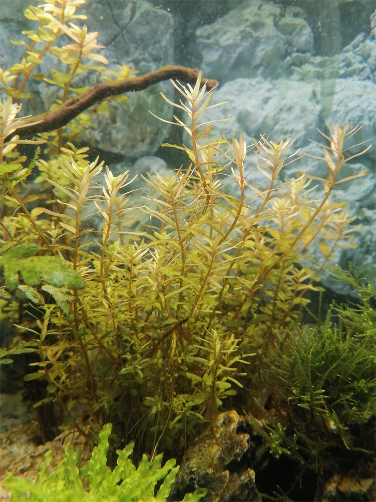 Les plantes poussent bien, voire très bien, comme pour les deux salvinia ! L'une de mes variétés de rotala s'est déjà bien métamorphosée. Ses feuilles, rondes lors de l'achat, sont devenues longues et fines. Superbe plante !