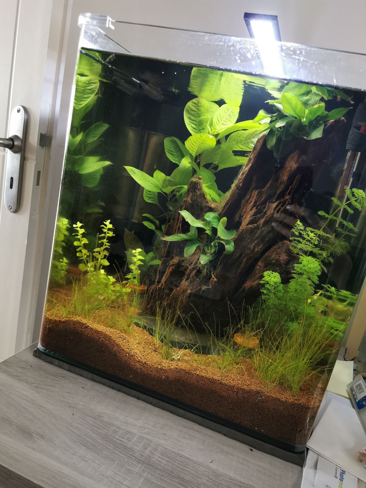 Et enfin ton bac manque clairement de plantes à croissance rapide pour concurrencer les algues. Pistia salvinia najas cerato sont des pistes à explorer. Elles peuvent ne pas te plaire, mais quand les autres plantes auront pris leur rythme de croisiere tu pourras les enlever, mais en attendant elles vont t'aider.