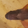 Malheureusement son état a empiré. Il est toujours dans le sceau et ne bouge presque plus et les plaque et truc blanc qui dépassent ce voient encore plus et la nageoire dorsale est rongé ( la ou il y a avait la trace ) Malheureusement mon labeo est condamné mais je veux savoir comment s'est arrivé et voir si personne d'autre n'est atteind. Il y a mon ancistrus qui est décoléré à moitié mais j'ai déjà vu ça il y a plusieu r mois et c'est redevenu normal.