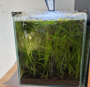 Sûrement un oeuf ramené dans les lentilles trilobées de la petite mare artificielle de la campagne. J'y retourne la semaine prochaine et vais l'y remettre. En attendant, j'ai essayé des vers de farine séchés pour Betta que j'avais en stock, mais il n'a pas l'air d'y toucher. Il faut que je le nourrisse cette semaine, or il m'a boulotté mes blackworms. Pas de petites red cherry, quand même ? Une idée? Des vers de vase congelés, des mini lombrics de mon composteur?