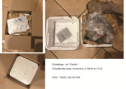 Photo du carton et déballage : on ne peut faire plus clair quant au contenu ! Je comprends qu'en ce moment il y ait du monde à livrer, mais à quoi bon payer cher un service par société habilitée à transporter des colis aussi particuliers?
