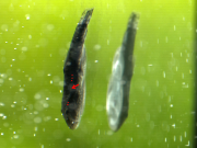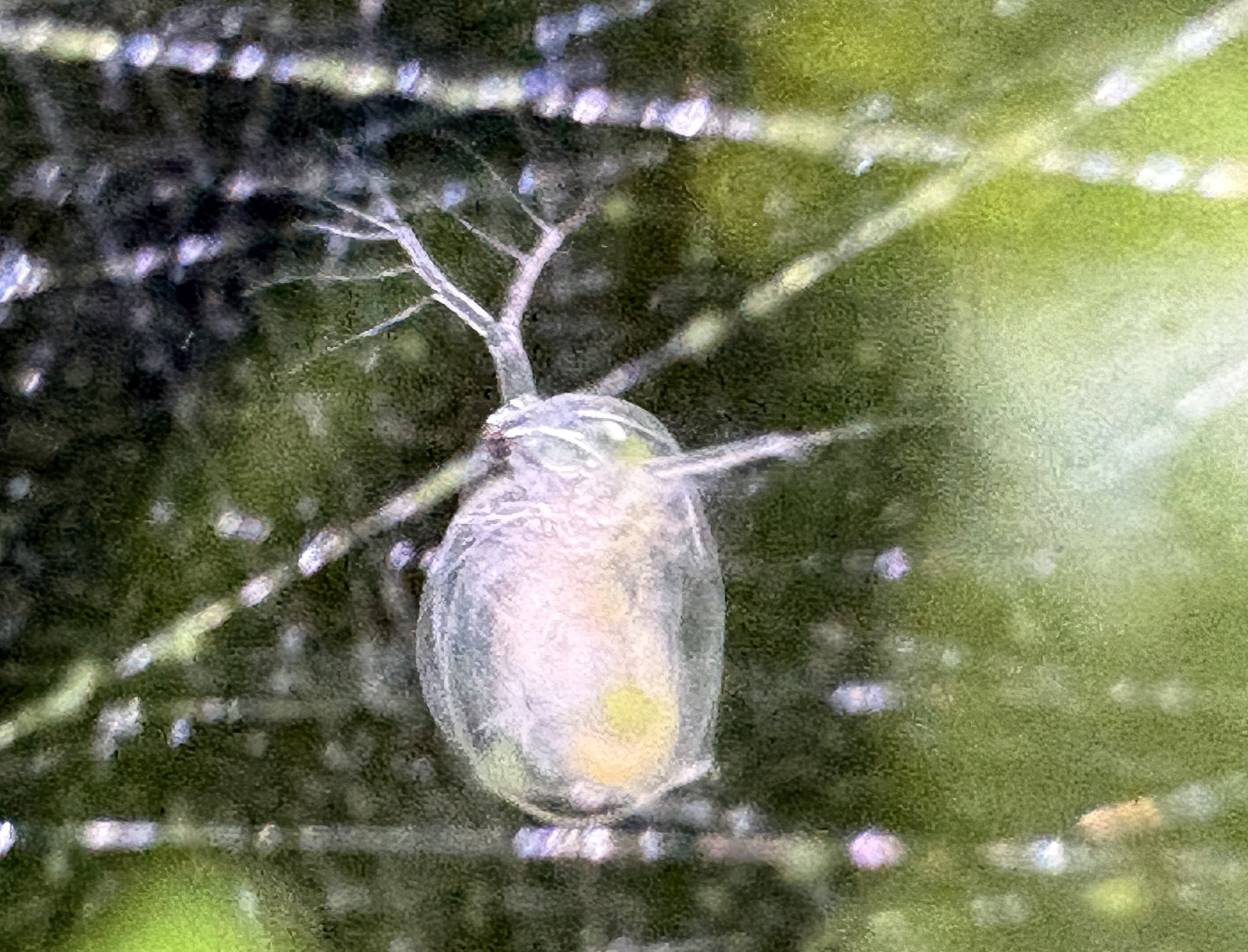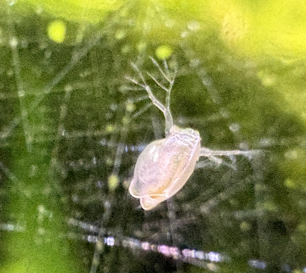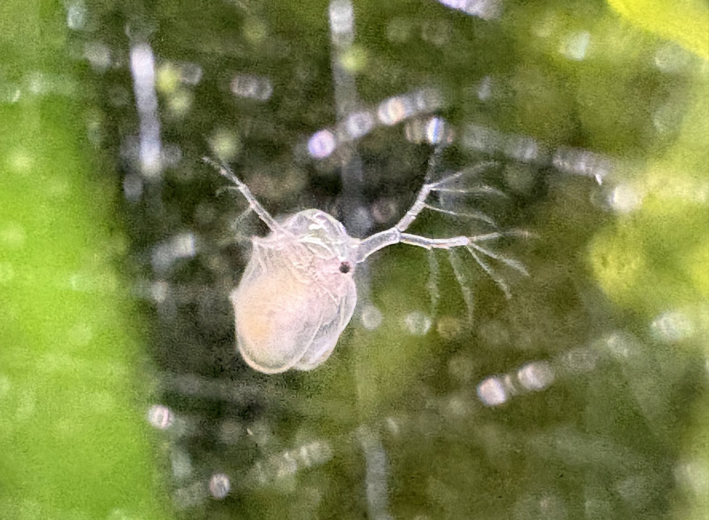 Distribution de daphnies aujourd'hui. Très difficile de faire des photos, pour raisons diverses. Je n'arrive même pas à dire si ce sont des D.magna ou pulex. Elles sont blanches et ont passé l'hiver dehors, sous la glace.