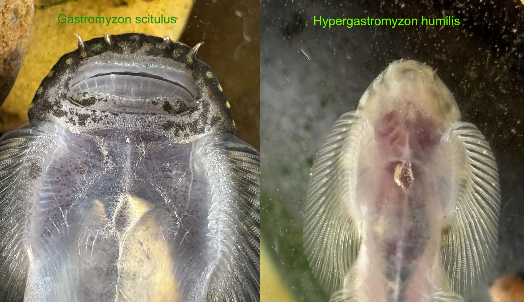 Et, tant qu'à faire, un gros plan de la bouche de l'hypergastromyzon n°2, plus net que la précédente (je ne lui ai pas trouvé encore de nom, si vous avez une idée ?  L'autre c'est "petite crêpe".