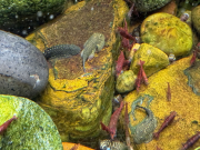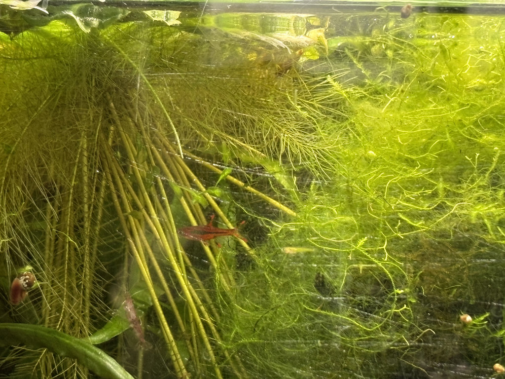 Lorsque je "change" les galets, je tombe sur des aselles, et la profusion de crevettes ne m'échappe pas, mais je ne trouve de lombrics aquatiques et d'animalcules, que dans les filtres. Pour les habitants plus petits encore, je ne peux que supposer leur présence.