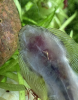 N°6 et sa blessure. Depuis ce matin (  ) elle a disparu, ça s'est cicatrisé. Les soins : comme on ne peut mettre les raquettes dans un bac hôpital (type "rivière"?), ni les soumettre à des médocs (potentiellement dangereux) j'ai tamponné à 3 reprises, en 3 jours, la blessure avec un petit bout de coton sur une pique en bois, avec 1 goutte de eSha 2000 pur. Bien entendu, ce n'est pas arrivé pur sur la plaie ! Le temps que la baguette descende vers les galets, le coton s'est imbibé d'eau, d'où grosse dilution. Touché deux à 3 fois avant qu'il ne parte. Ca et les changements d'eau (forcément) permettent d'envisager ce type de soin.