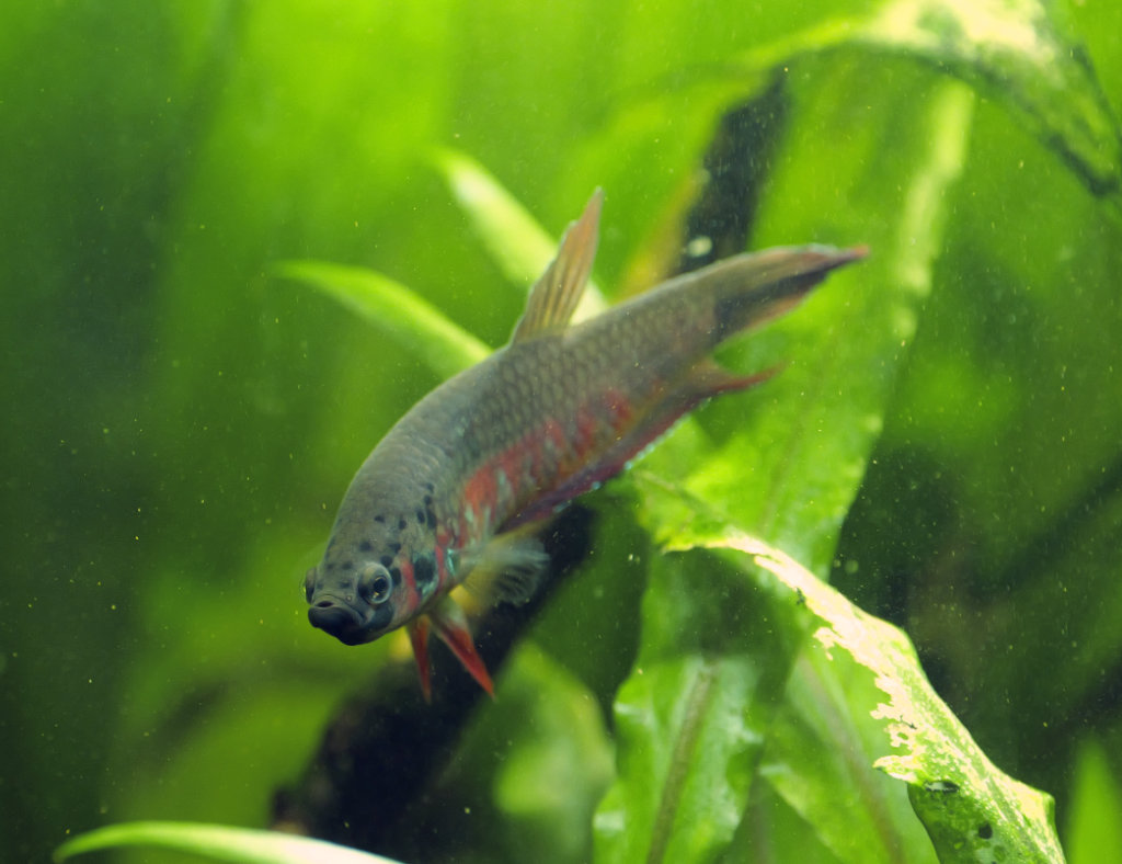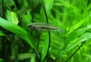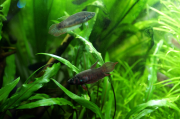 Noel plonge au fond du 70l comme un grand et se goinfre de tout ce qu'il peut picorer sur les vitres, les plantes... les Boraras n'en ont plus peur et nagent un peu avec lui (ou plutôt l'inverse). Curieusement, il a une couleur globale jaunâtre, avec de petites taches brun rouge sur les flancs. Un petit mâle ? Je mettrai un distributeur, mais sûr qu'il trouvera quand même tout seul de quoi tenir la semaine.