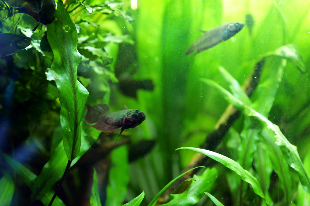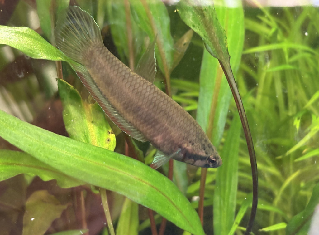 De retour après moins d'une semaine, finalement . Il manque une petite G.crenastus, celle qui avait la caudale qui s'effilochait. J'attends d'être sûre Papattes est en pleine forme, gigote devant la vitre dès que j'y mets le nez. Peut-être que je me fais des idées, mais on dirait qu'une des pelviennes repousse, elle a l'air plus pointue. L'autre, impossible de la voir, madame me présente toujours le même profil.