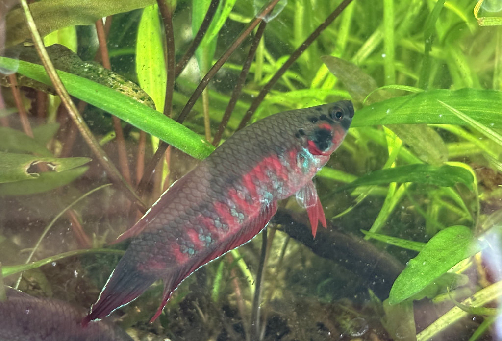 A priori, les Boraras ont peur de tout ce qui est nouveau et laissent les alevins. Ils changent de couleur et deviennent tout rouges quand ils sont excités. Le plus pâle serait ici une femelle (?) J’ai filmé les babies.Papattes a l’air en pleine forme, mais elle a eu droit à trois jours en bac hôpital ce que je peux difficilement faire avec les gastromyzons. N°6 mange, c’est une timide amélioration mais il n’est pas en super forme. La Grosse Bulldozer vient le voir de temps en temps sur son galet.