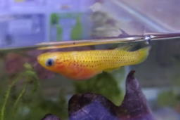 Je me rends compte au passage que je ne vous ai pas présenté "Killie Minogue", femelle Aphyosemion australe var gold ou doré ou /hjersseni/ :