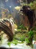 Ludwigia super red mini est installée à côté de la lumière d'appoint submersible et les autres plantes rouges, ce sont des flottantes qui prendront bien la lumière forcément. Il y a quelques plantes à pousse rapide (vallisneria que tu m'as donné, echinodorus vesuvius, echinodorus ozelot) mais je peux y ajouter du ceratophyllum demersum pour accentuer la concurrence avec les algues. La cascade en silicone peut être recommencée d'ici quelques années ou enlevée au pire.