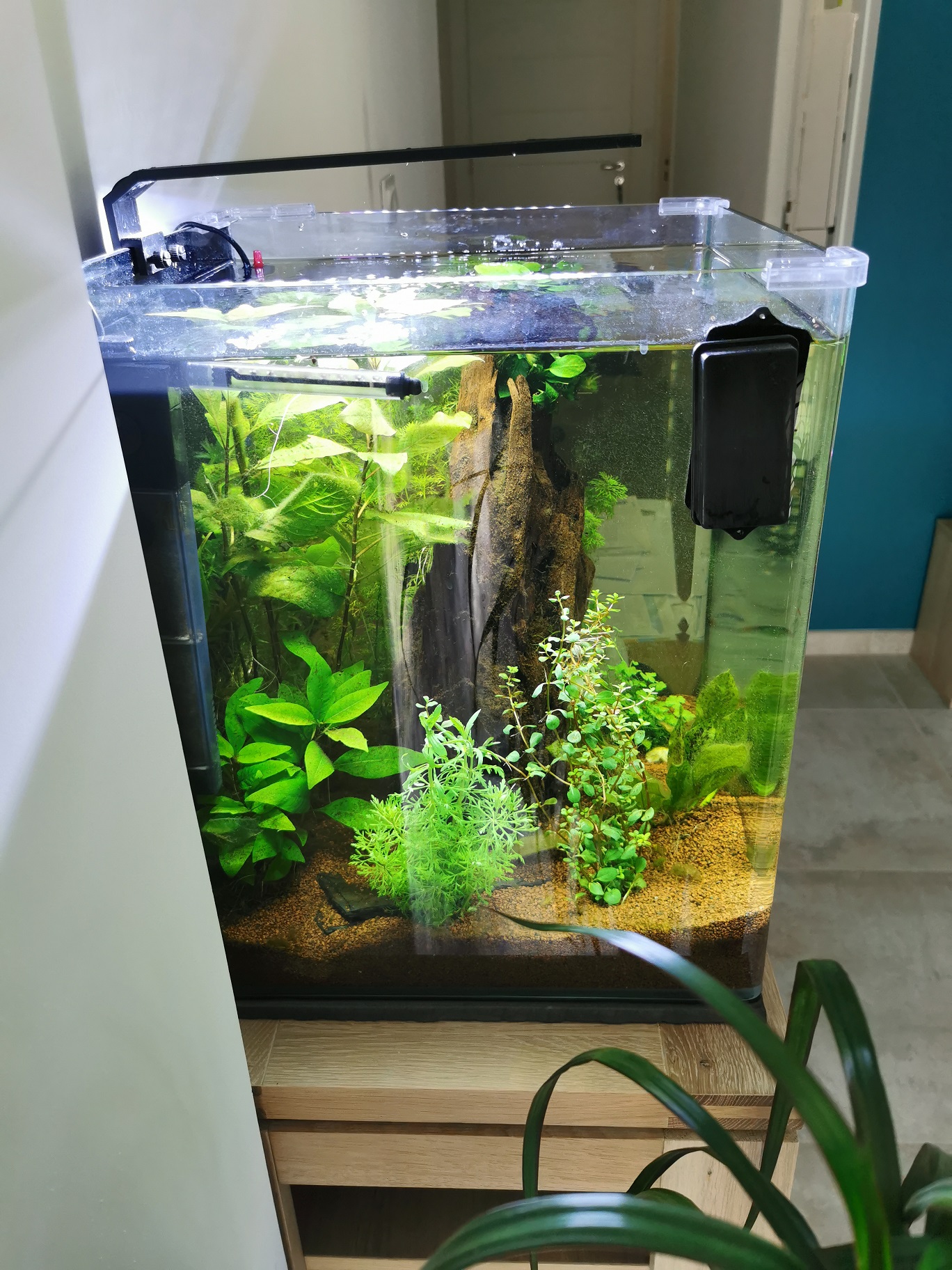Je pense pouvoir bientôt introduire mon BETTA vous en pensez quoi ? Grand Père merci pour les conseils, je vais aller récupérer des plantes flottantes alors et je viens encore de rajouter 2 plantes à croissance rapide..on m'avait dis que pour concurrencé les algues c'était pas mal.