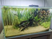 Tu peux virer les oto aussi ou les tetra mais 3 espèce dans un 80 litre ca me semble trop aprs je peux me tromper Pour les bacteries oui ca reste une solution de secours mais bon