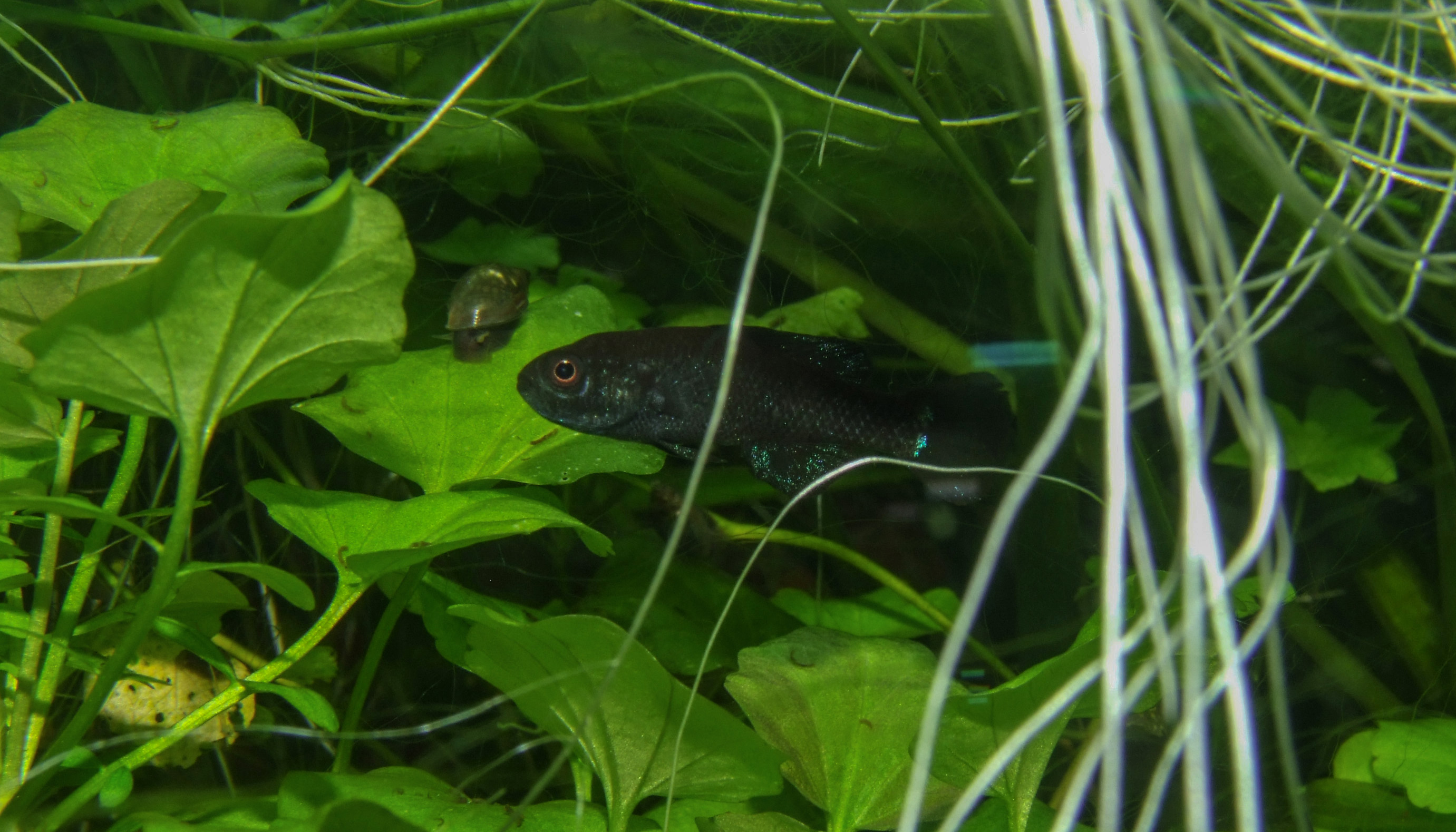 Si les Tanichthys albonubes sautent des repas dès lors que la température passe sous la barre des 10°C, les Elassoma eux, ne désarment pas. Ils sont toujours aussi vifs et gobent tout ce qui passe !  Heureusement il y a toujours de la nourriture vivante.