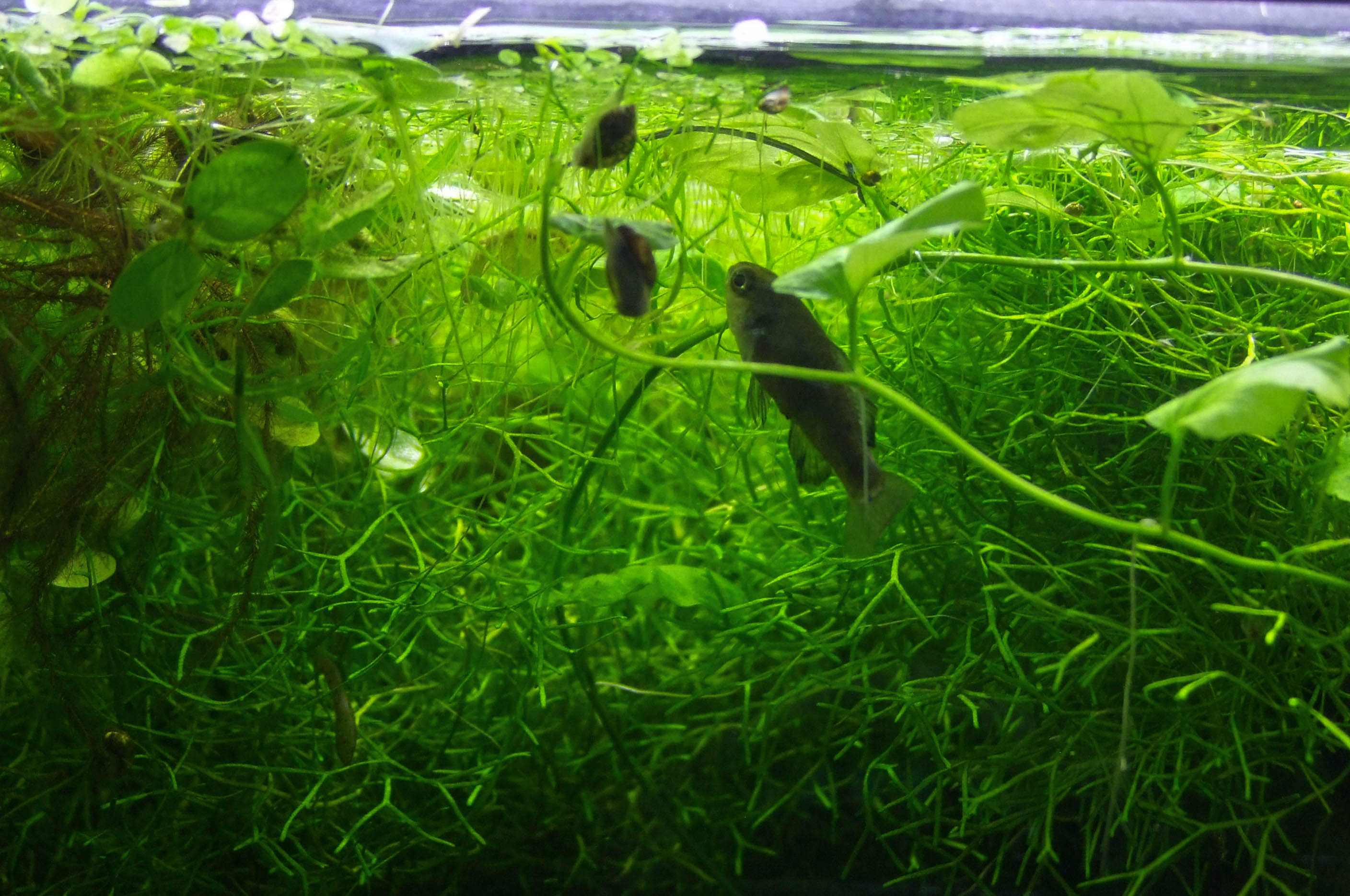 Je crois que j'ai tout bien fait. Il est juste un peu plus bas en dureté que moi... J'attend le réchauffement avec impatience pour voir s'ils daignent se reproduire ! En attendant, les mâles paradent, et les femelles ont disparut dans l'enchevêtrement des flottantes... ça se précise ?