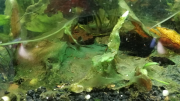 Les poissons vont bien, même si les branchies un peu rouges de la femelle m'inquiètent un peu, mais je ne détecte rien d'autre d'anormal. Peut-être est-ce à cause du pH ? En tout cas c'est un vrai plaisir de voir évoluer ce couple dans le bac, ils sont ravissants ! Les planorbes poussent comme des petits pains, j'ai raté l'éclosion d'une de leurs pontes qui était bien visible sur une feuille morte, j'ai découvert d'autres bébés planorbes et mélanoïdes. Je n'ai pas aperçu de nouvel alevin de killi pour le moment.