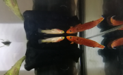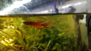 Après quelques inquiétudes sur le comportement du mâle ces derniers jours, tout est rentré dans l'ordre. Il nageait en effet comme un cinglé dans un coin du bac comme s'il voulait en sortir en traversant les parois... Et ne se préoccupait pas du tout de la petite nouvelle (qui a bien grandi depuis) malgré qu'elle vienne le voir souvent et même tentait de se coller à lui. Apparemment, monsieur n'appréciait pas du tout le courant de la filtration : j'ai retrouvé un morceau de collant que j'ai posé sur le rejet pour bien le casser, et voilà qu'il a repris un comportement normal, s'intéresse à la demoiselle... C'est beau de les voir évoluer doucement côte à côte, on dirait des amoureux c'est rigolo (la saint valentin était il y a deux jours, après tout  ).