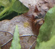J'ai découvert une ponte de planorbes l'autre jour, là certains des petits commencent à s'agiter dans leur enveloppe (c'est dur de voir, c'est tellement petit !).