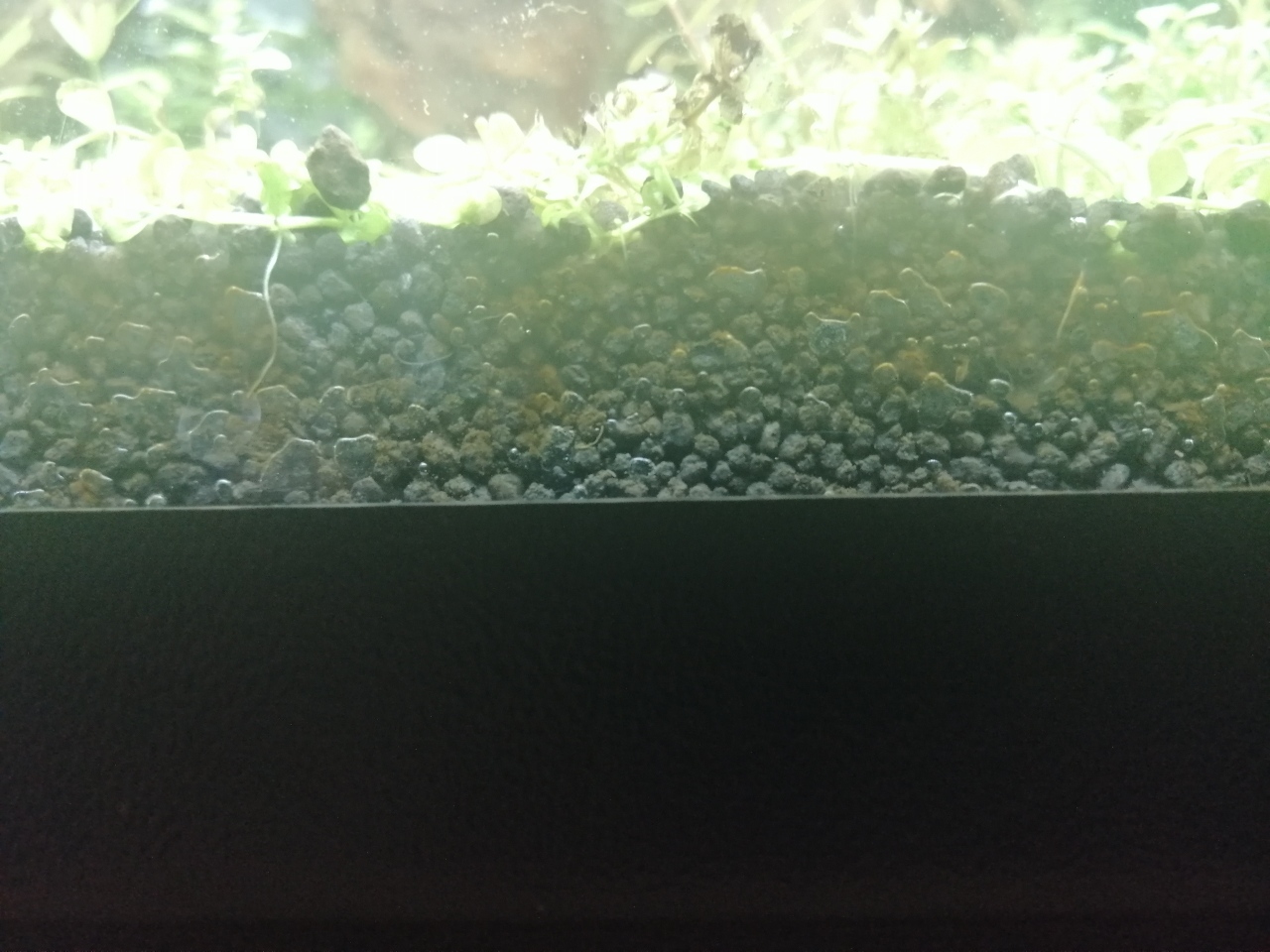 J'ai également constaté une différence de couleur dans le sol ( je psychote un peu .. ) et les algues foncées également qui commence a pousser :(