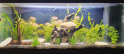 ah oui, effectivement, en comparaison, le mien est vide    Mais pas d'inquiétude, ça pousse, et il me suffira de ne pas trop débroussailler lors des séances de jardinage pour atteindre un bac ressemblant non ? Bon, il me manque quelques flottantes encore, et surement de la mousse de java sur les pointes des racines, une fois celles ci débarrasser définitivement de leur voile blanc. Mais avec ce style de bac, ça ne gène pas la nage ? on peut quand même observer correctement les poissons ? Parce que s'ils passent leur temps cachés dans les feuillages c'est un peu bête
