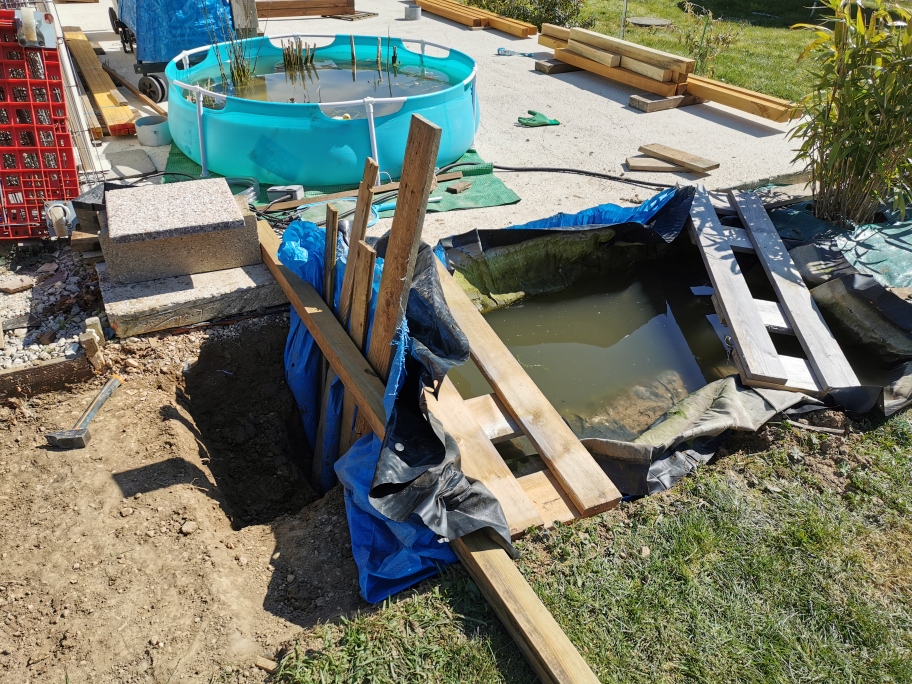 Petit projet d'amélioration en cours! J'ai acheté fin d'année dernières des poteaux en bois de 240x7x7cm pour refaire un contour de bassin digne de ce nom et ajout d'un lagunage dès que je pourrais en acheter d'autres (après confinement...).