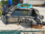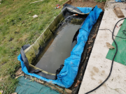 Grâce à l'ancienne bâche et quelques parpaing j'ai pu lettres quelques centaines de litres d'eau à reposer pour le future remplissage.