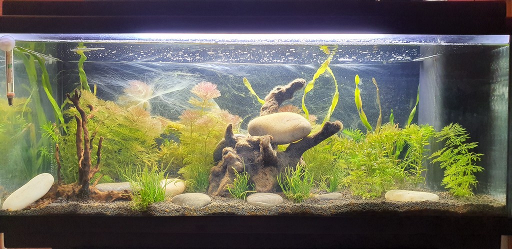 Tout le monde se porte bien, les crevettes viennent de faire leur première mue  Je viens d'intégrer les rasboras arlequin, ils se sentent comme des poissons dans l'eau   Pour le moment, tout à l'air de bien se passer. Je boost un peu les plantes avec du co2 liquide easylife, juste 1ml par jour.
