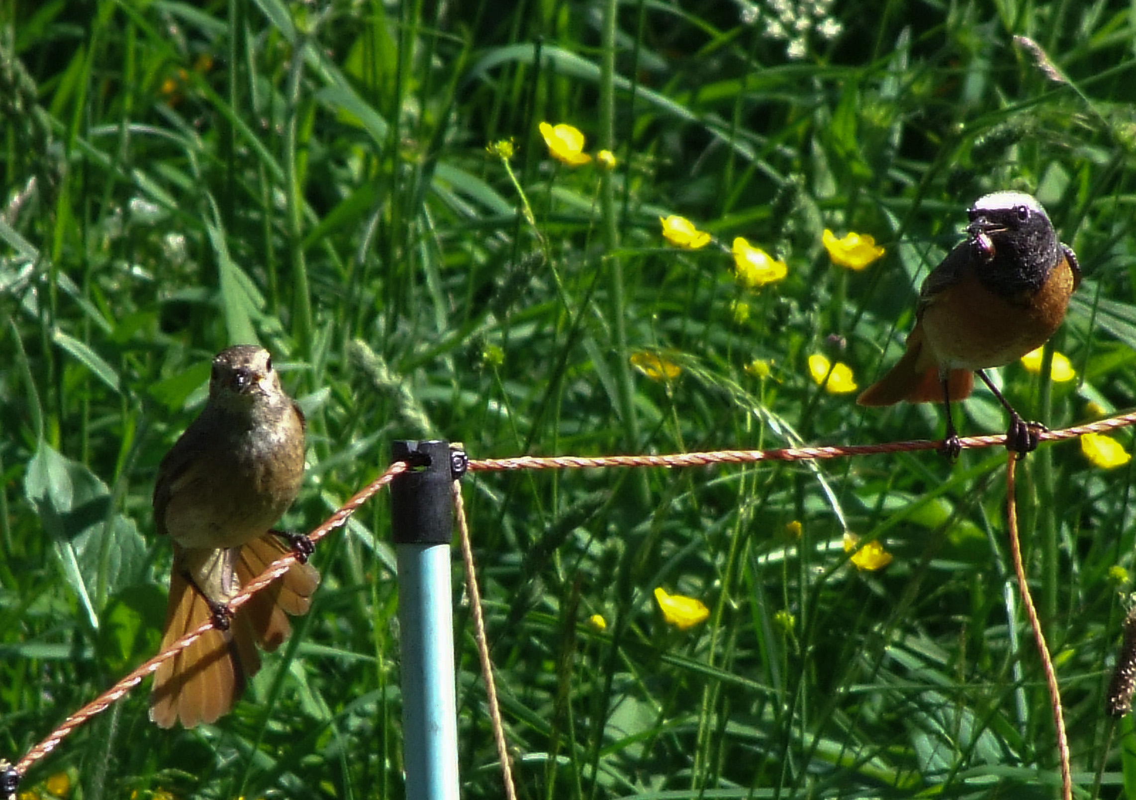 Ils sont sur une clôture électrifiée ? Tu as pris la photo juste au moment où le mâle prenait un petit casse-croûte