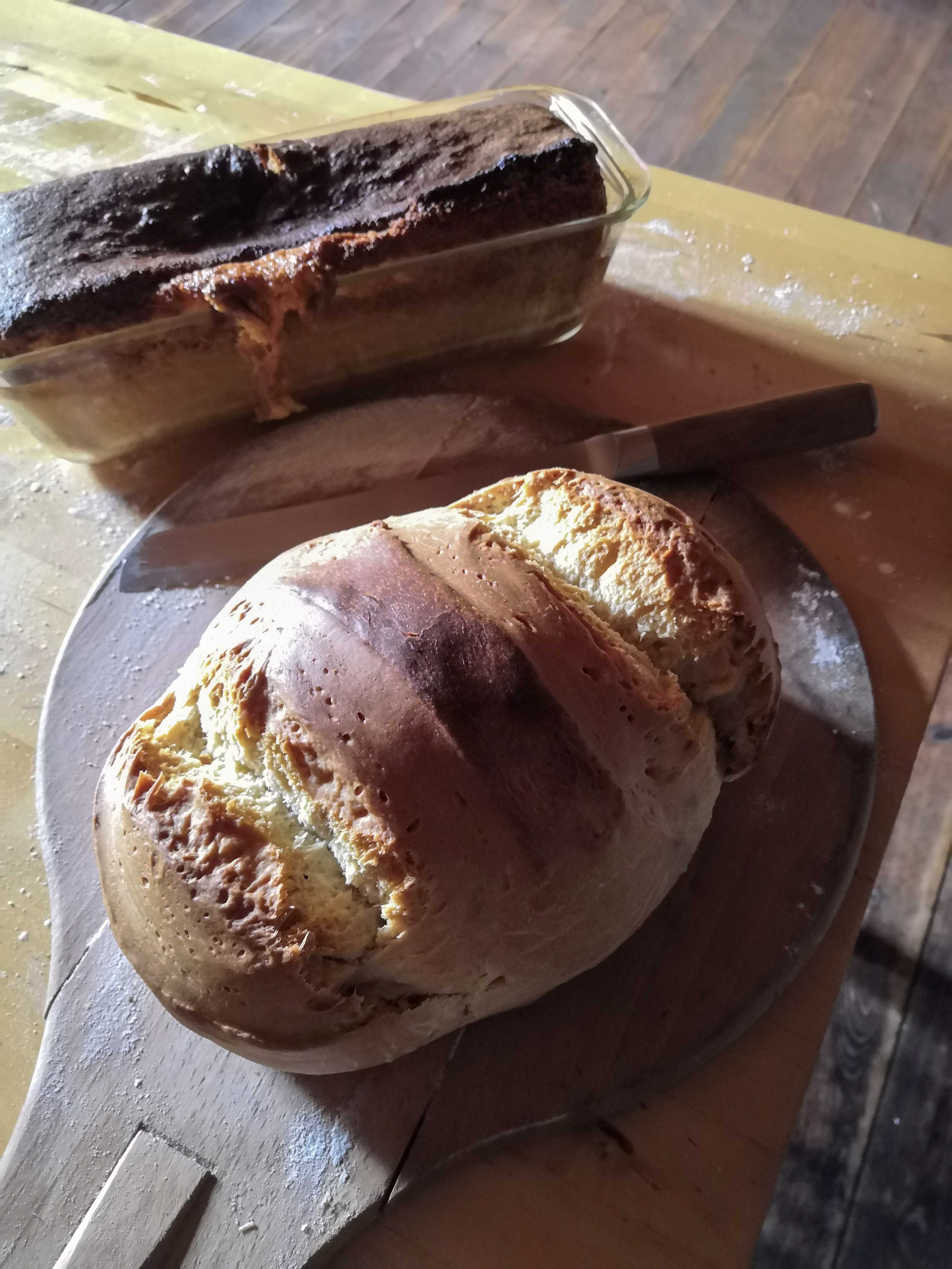 Ici, on est dans le pétrin et les animaux dépriment... Oh, non, non. Tout va bien ! C'est juste qu'on fait du pain et qu'on fait pâturer la première herbe des prairies de fauche... c'est la déprime.   Le dimanche on fait un four... pour la semaine. Pour le lait et les oeufs, on ne manque de rien ici. C'est lors de ces troubles, qui seront malheureusement de plus en plus fréquents, que l'on peut se rendre compte que la vie en ville est inadaptée à la survie. Combien de temps avant que les citadins affamés viennent piller les campagnes ?
