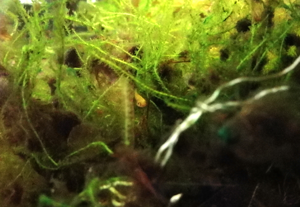 Je me félicite vraiment d'avoir acheté cette weeping moss, depuis qu'elle est bien couverte par les Salvinia elle pousse comme du chiendent et forme une pouponnière absolument parfaite ! (c'est d'ailleurs pour ça que je l'avais prise, à la base, sur conseils de forums avertis).