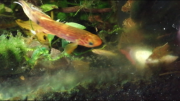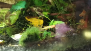 La coloration de l'alevin se précise, c'est un mâle. Hé zut, ça va faire 2 mâles pour 1 femelle... À voir ce qu'on va faire pour éviter ça : séparation ou ajout de femelles... Une des anubia est en fleur :