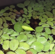 Coucou, oui, tu peux prendre la photo. C'est une Anubia barteri var nana. Au milieu de Salvinia natans. J'ai été surprise de découvrir ce spathe... Il est resté ouvert 2 ou 3 jours peut-être.