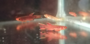 Bon, j'ai un gros doute sur le sexage de la petite friture... Parce que là, ça ressemble de plus en plus à un mâle... Et surtout j'ai revu la photo du jeune mâle à la même taille, et lui aussi avait la caudale arrondie, une couleur de femelle, et juste ces liserés sur la nageoire anale...
