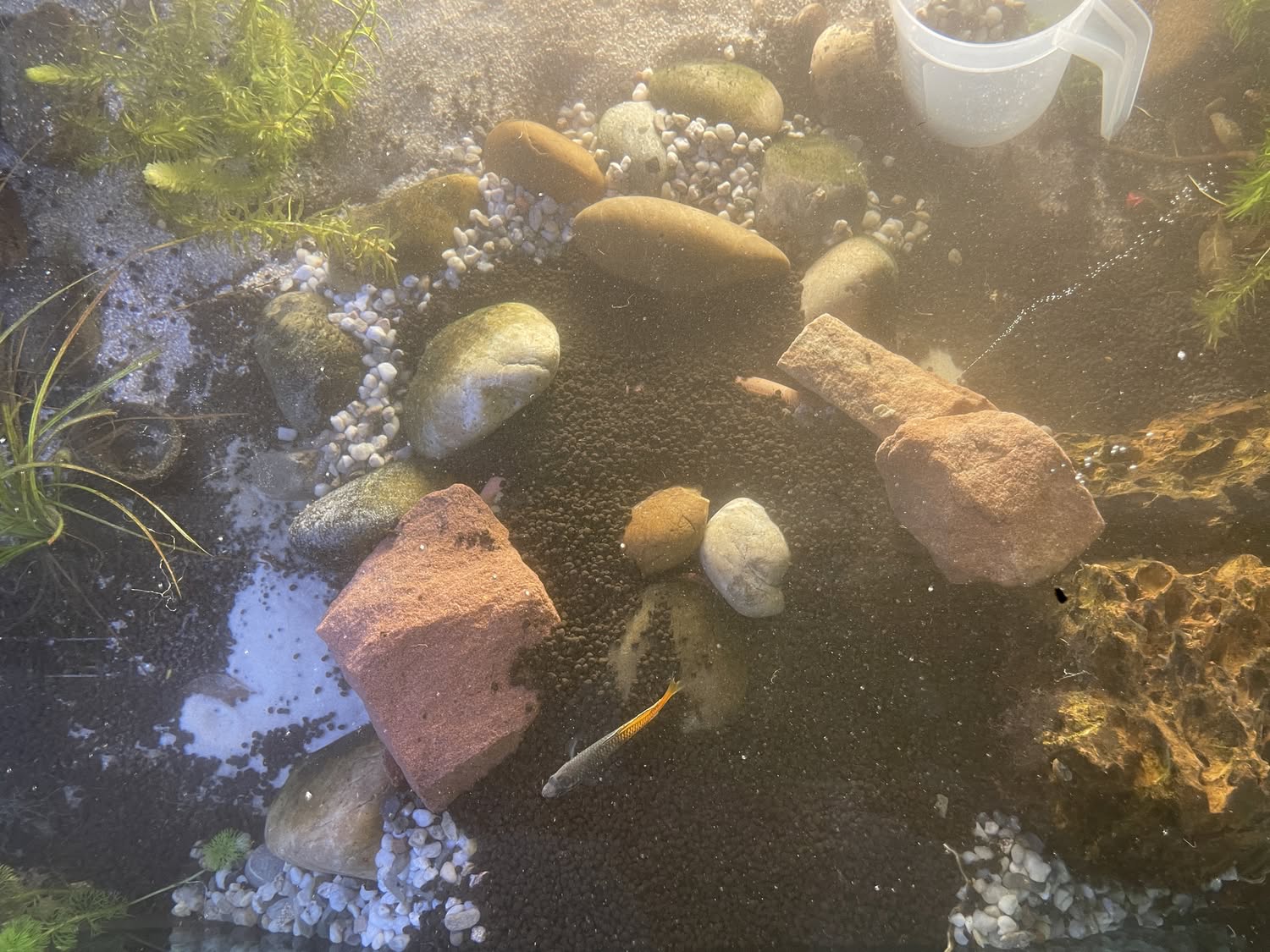 Ca me fait penser à mon défunt Bubulle le poisson rouge, qui refaisait la déco lui aussi, en aspirant et recrachant le sable. Pas mal de poissons le font, en fait, ceux qui ont un régime omnivore opportuniste et une grande bouche.