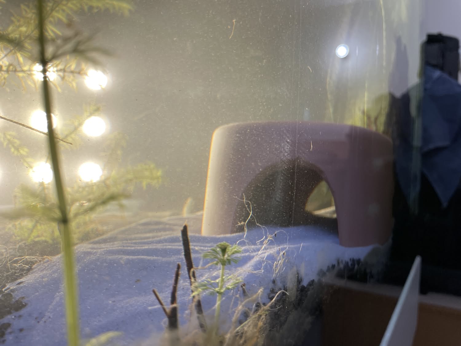 Pour le moment tout semble calme dans mon bac, pas de trace de retour ou foyers suspect. Le seul endroit où il y a des résidus certainement morts c'est entre la vitre avant et le sable, mais difficile d'aller nettoyer ça sans creuser tout le long...