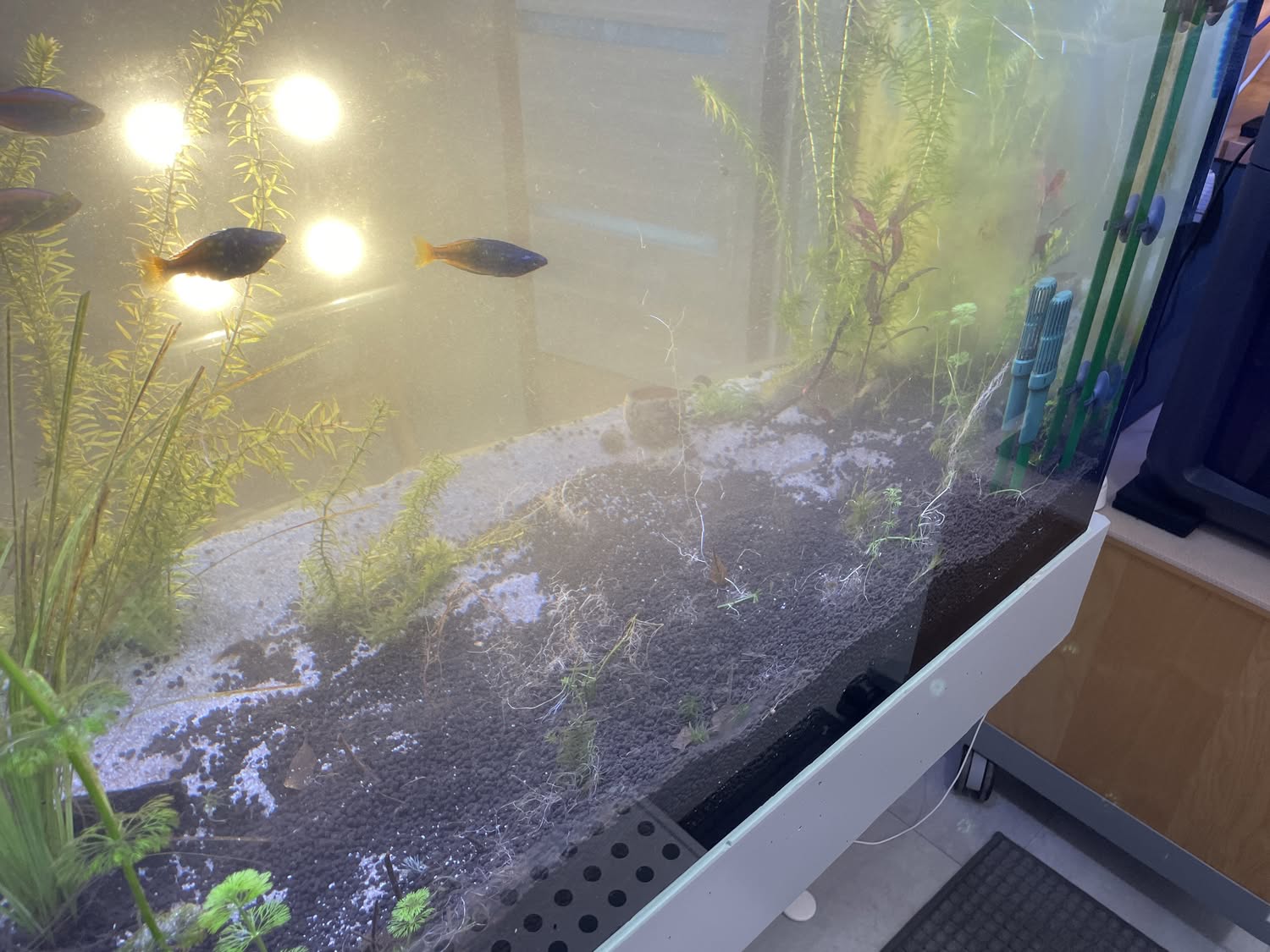 Donc voilà, ça fait du bien de retrouver un bac "normal", où je ne dois pas nettoyer toutes les semaines ces "peaux de cyano", couper ou sacrifier des plantes. Ne pas voir qu'après 2 jours tout est redevenu aussi pollué. Maintenant j'espère que ça va rester stable et ne pas revenir, surtout que je ne sais pas quel facteur a changé la donne.