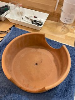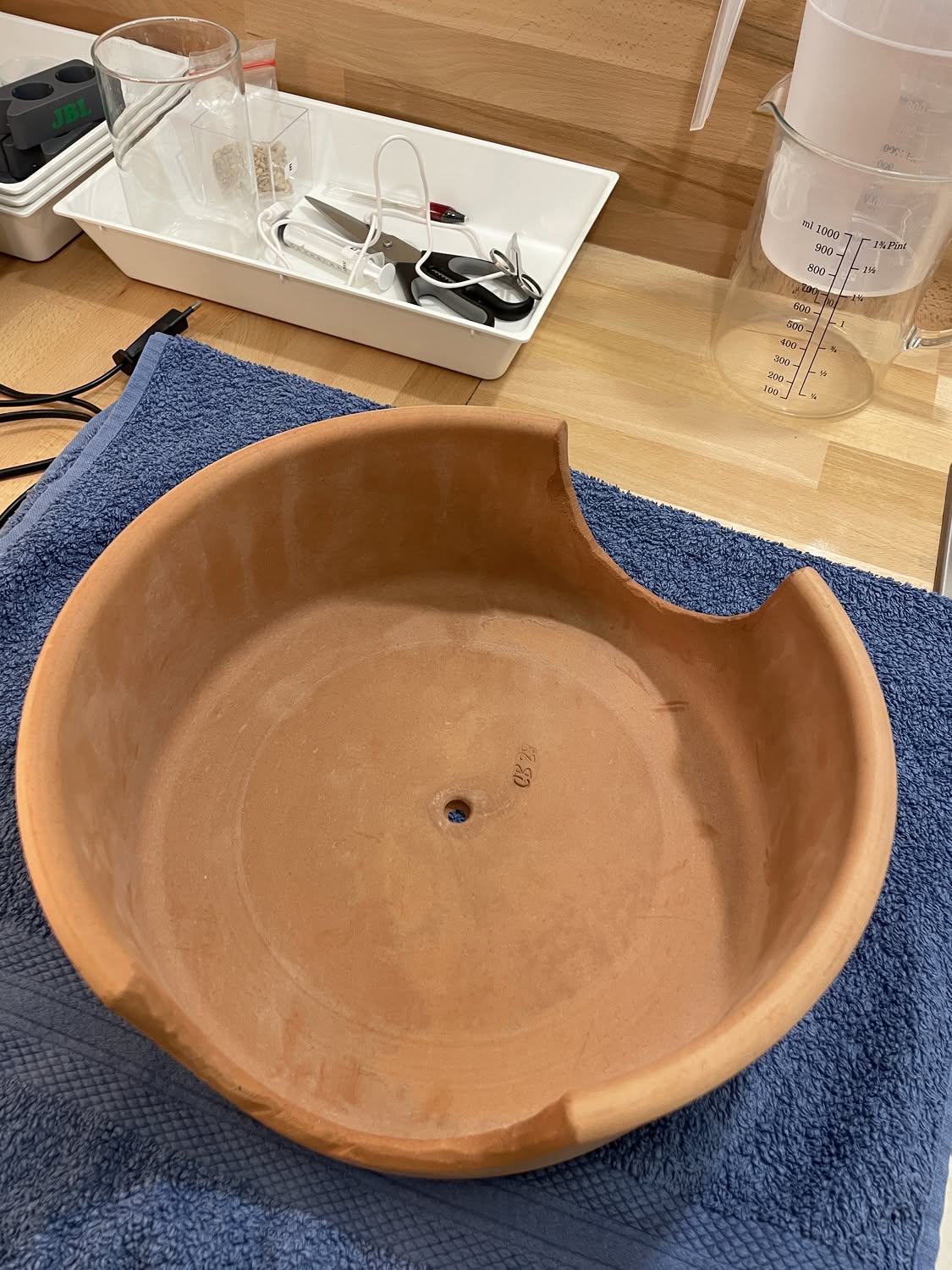 Donc j'ai cherché un pot tout fait avec une forme adaptée et je l'ai découpé pour faire deux ouvertures, je me suis dit que c'était plus rassurant pour le poisson d'avoir deux issues et de la lumière, qu'ils ne se sentent pas coincés. Ca donne ça: découpé et poncé pour ne pas avoir d'angles saillants.