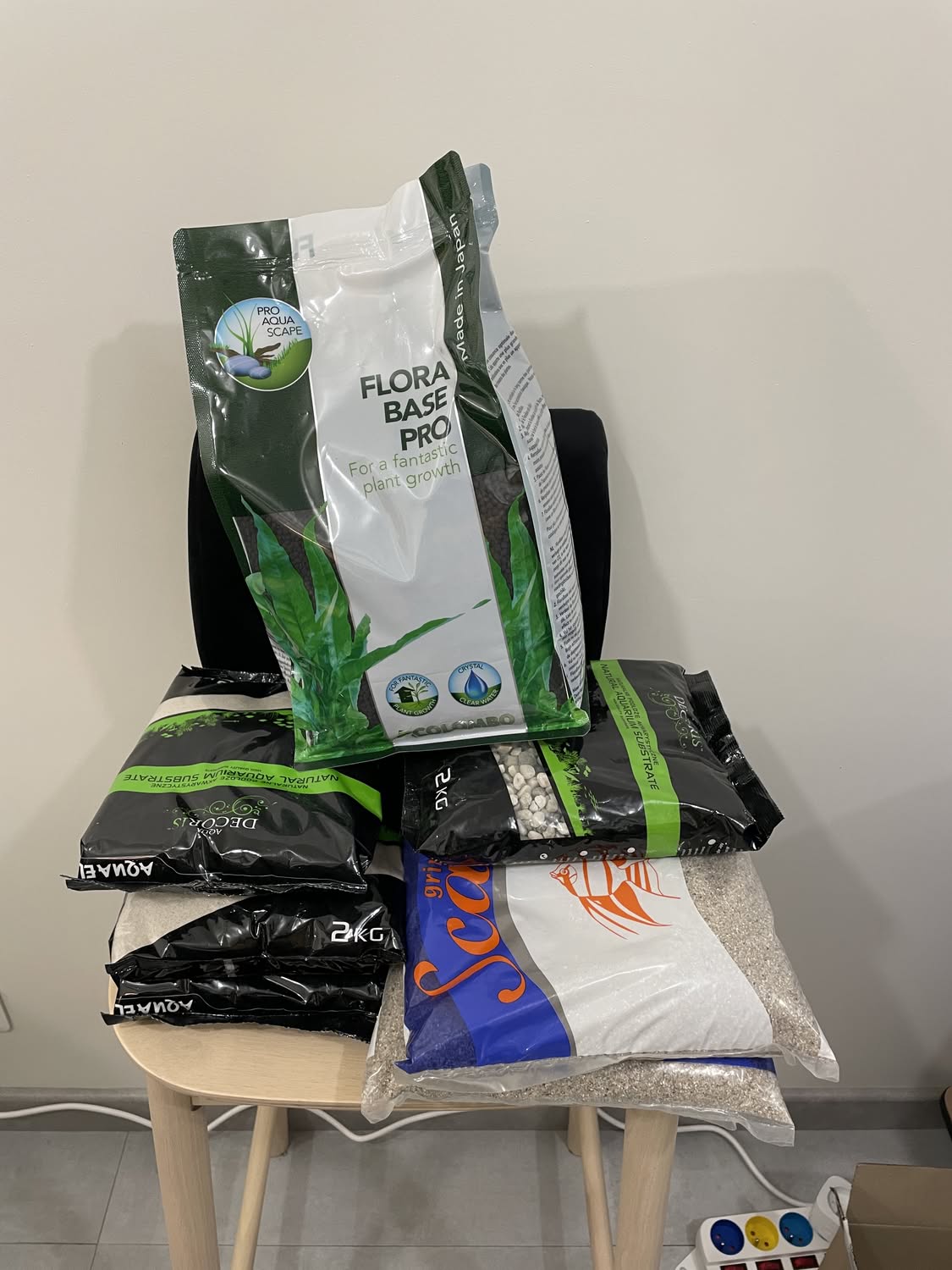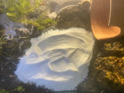 Etape suivante il faut du sable, sable de Loire, sable hyper-très-super-fin 0.1-0.3mm, des graviers plus gros pour boucher les trous et enfin du substrat pour les plantes qui vont pousser sur le talus: Difficile d'apprécier les quantités, mais ça va j'ai vu juste!