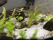 Il fallait que je fasse cet aménagement maintenant, tant que les plantes sont encore "déplaçables" et que le sable ne soit pas encore chargé en gaz dangereux qui pourraient se libérer pendant le chantier. Et je voulais faire ça avant l'arrivé des Corydoras, qu'ils aient de suite leur environnement et éviter un stress supplémentaire.