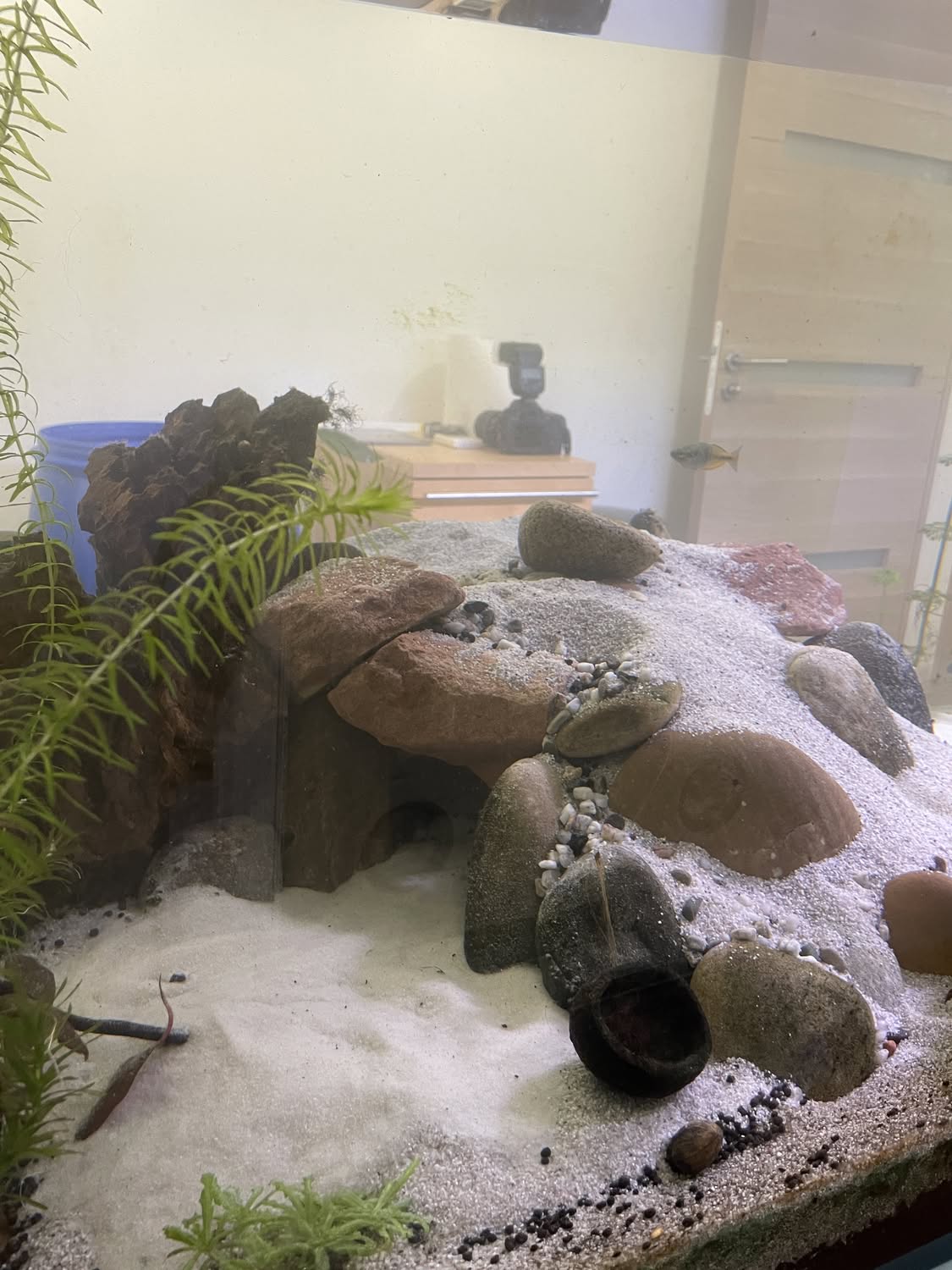 Voilà mes aventures! Mon angoisse était d'avoir fait ça pour rien (cachette), mais après 2 jours les Megalechis se sont invités dans la grotte, je les vois aller se reposer dedans où traverser comme un passage secret. Tetra et Melanotaenia sont allés voir, curieux, mais ce n'est pas leur délire les grottes  Pour les Corydoras, ils y vont petit à petit, plutôt près des ouvertures mais ça va venir. En tout cas il y a de l'activité dedans car je vois des traces de fouille dans le sable!
